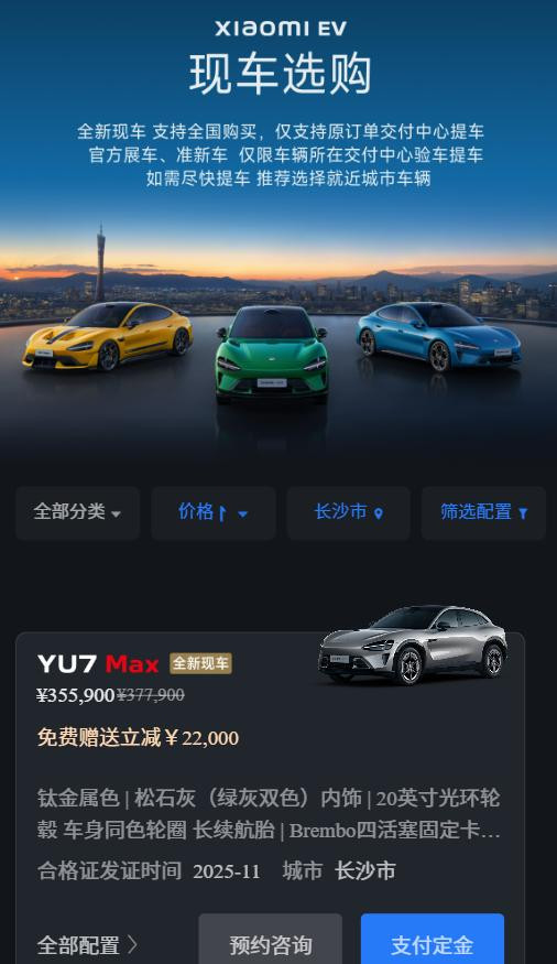 不信大家可以现在看小米汽车APP看,10天过去了,依然还有很多现车等着你来下单,下单就锁单,这个月还能提到车,根本就不要等。